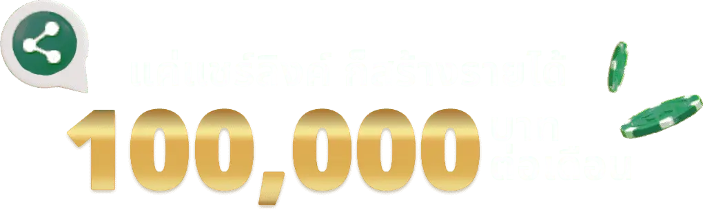 - ยกตัวอย่าง เช่น เพื่อนของท่านวางเดิมพัน 10,000 บาท คุณจะได้รับส่วนแบ่งทันที 50 บาท